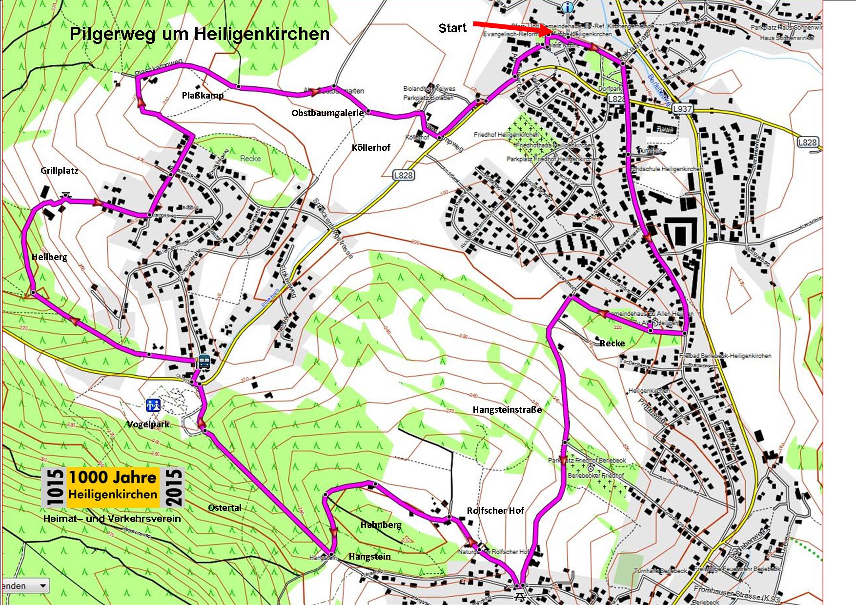 Pilgerweg um Heiligenkirchen Diese Route entstand im Rahmen der Feierlichkeiten zum 1000-jährigen Dorfjubiläum, skizziert wurde sie von Ernst Lehbrink, die Wegstrecke beträgt 7,5 km, man sollte sich schon zwei Stunden Zeit nehmen.